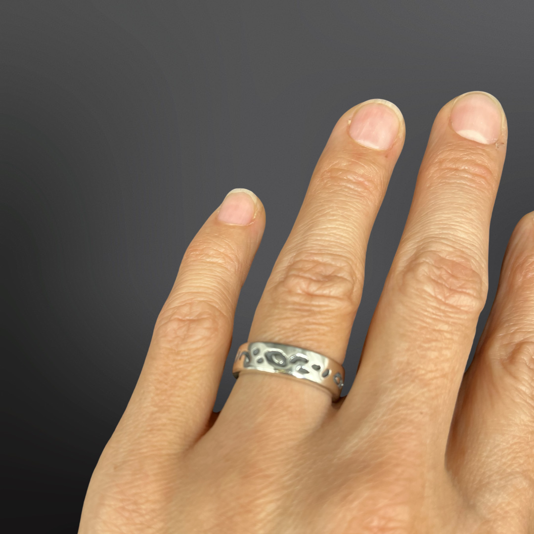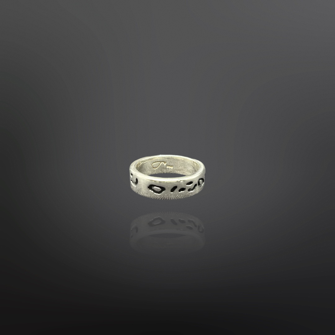 El anillo Caatai no pasa desapercibido, es muy elegante pero nada tradicional, para mujeres de espíritu salvaje. Está hecho a mano en Plata 950, de acabado brillante y con técnica de oxidación bajo relieve para las manchitas.